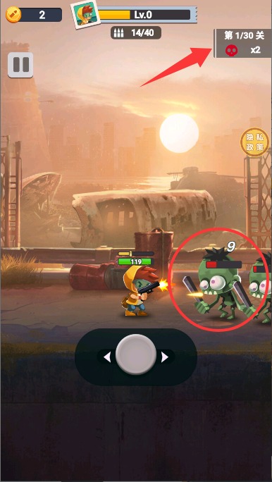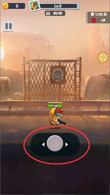 1、开局后按住屏幕左右滑动调整走位,控制角色灵活移动并锁定沿途敌对目标发动攻击。