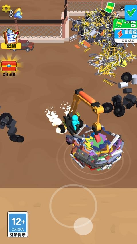 《清扫我最强》是一款非常有趣的休闲游戏,主要玩法是驾驶挖掘机清理地上的垃圾。游戏中充满了各种废弃物,你需要将它们分类清理干净才能通过关卡。随着你升级你的挖掘机,工作速度会变得更快,并且还能使用像吸铁石这样的工具来专门收集金属垃圾。游戏的难度会逐渐增加,后期需要动点脑筋才能解决。虽然画面简洁,但非常解压,看着杂乱无章的场地被整理得井井有条特别有成就感。这款游戏非常适合在空闲时间用来打发时间,一旦开始玩就很难停下来。