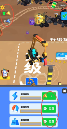 1前往标有升级标识的区域后,可以增强吸附力、扩大作业范围和增加装载容量,通过消耗螺丝和货币资源来进行升级。左侧会显示螺丝的数量,右侧则展示余额。