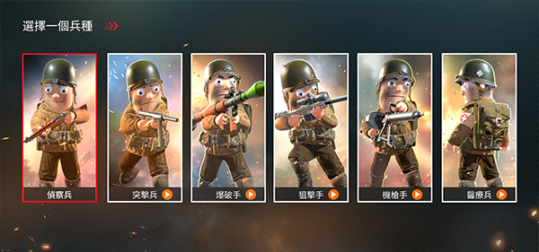 2、游戏开始前,玩家要挑选一个兵种,可供选择的有侦察兵、突击兵、爆破手、狙击手、机枪手以及医疗兵。每个兵种职责各异,玩家能够依据自身喜好来挑选。此刻,我们选择突击兵进入游戏。