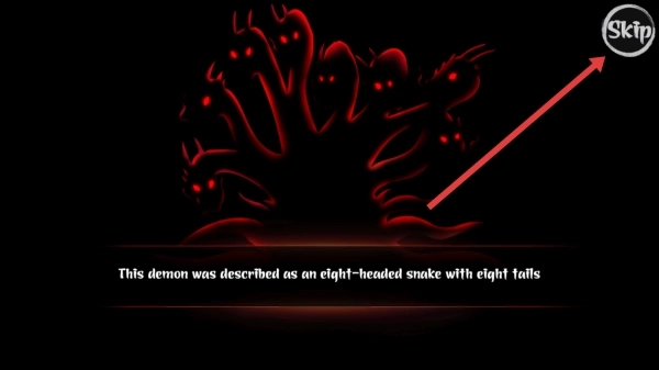 2、遇到demon相关剧情画面,点击右上角Skip按钮,跳过剧情介绍,快速进入实际gameplay。