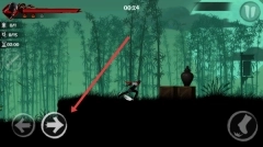 3、进入竹林关卡,点击右侧方向箭头按钮,操控忍者角色向右移动,探索场景并完成任务。