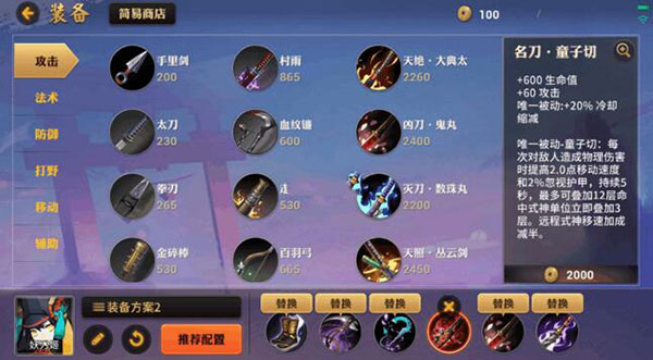 妖刀姬出装推荐:建御之靴+森罗万象+极心无梦+名刀·童子切+凶刀·鬼丸+袭色·大噬魔丸