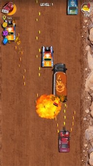 2、游戏操作简单,仅需单指操控战车进行射击和移动。按住屏幕时,赛车会自动射击,通过左右滑动可以控制赛车的行驶路线,整体操作流畅顺滑。