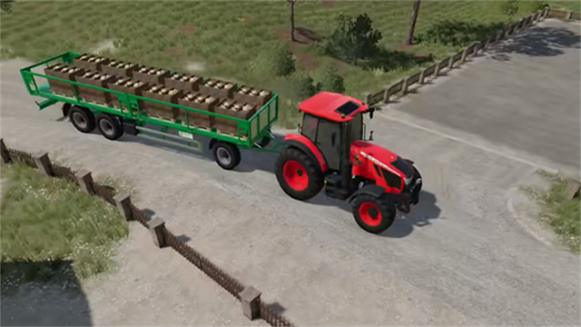 收割机收割满后,需要用“拖拉机”组合“拖车、托盘、捆等尾部”来释放收割机存储的作物,并把作物运输至“贩卖点”或“青贮窖”。