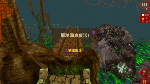3、要是不小心掉落悬崖,亦或是撞到树上,都无需担忧,点击即可原地满血复活!不过,得先去商店购买复活道具才行。