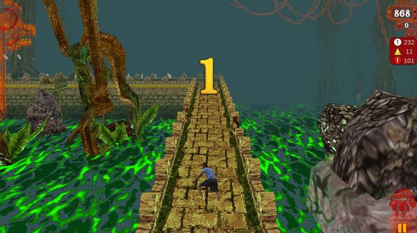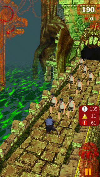 整个游戏是基于神庙逃亡的玩法来的,所以也还是一款跑酷游戏;