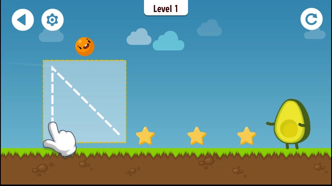 1、进入游戏后选择关卡,观察场景中鳄梨的起始位置与目标点,以及中间的障碍分布,准备绘制第一条引导道路。