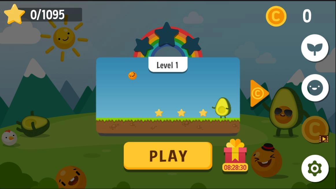 1、简洁清新的画面:运用简洁清新的画风,背景色柔和宜人,场景设计简单明了,鳄梨角色呆萌讨喜,共同构建出轻松愉悦的游戏环境。