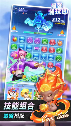 最强潮玩团免费版本巧妙融合了卡牌RPG与消除玩法。玩家在畅享三消乐趣的过程中,能够施展玩偶们绚丽的技能,助力快速完成消除操作,从而为玩家打造出更具策略深度的战斗体验。
