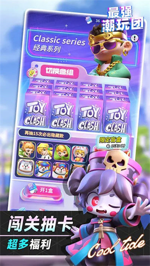 最强潮玩团免费版,是一款围绕潮玩主题打造的消除类RPG游戏。它以炫酷时尚的潮玩作为核心主题,融入休闲益智的消除玩法,为玩家带来令人眼前一亮的全新游戏体验。在游戏里,玩家能够收集形形色色可爱的盲盒手办,这些手办会成为玩家独一无二的专属收藏,使玩家轻松领略开盲盒所带来的惊喜与欢乐。