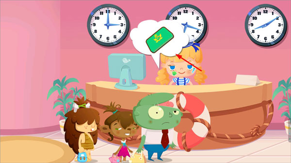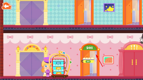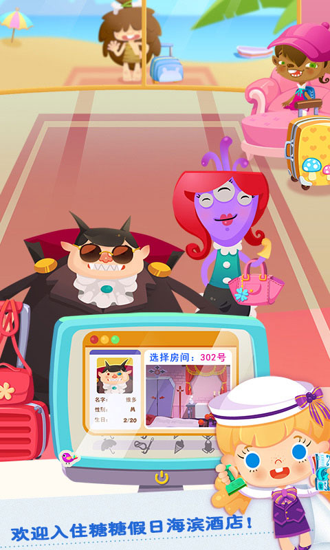 1. 开启游戏,与糖糖一同前往海滨酒店,第一步先到酒店前台办理入住手续。