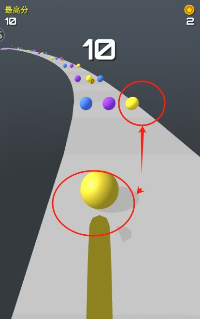 3、改变颜色之后,选择撞击同颜色的球球。