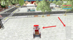 3、在游戏操作界面通过红色箭头指向的虚拟按键操控消防车移动完成救援任务。