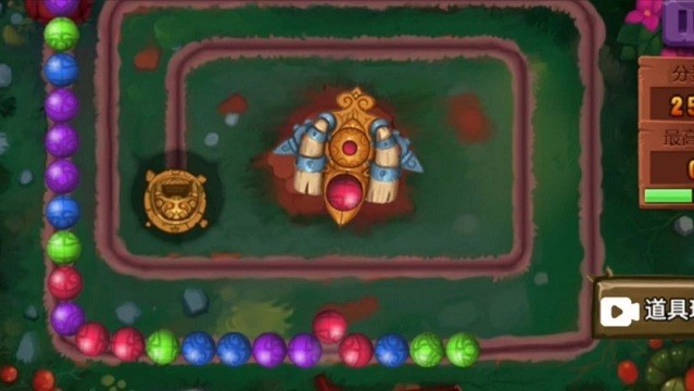1、弹射消除:玩家需要使用弹射器将彩色球发射到屏幕中的球链上,与相同颜色的球进行碰撞,触发消除效果;
