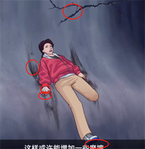 2、手紧紧抓着墙面,脚踝已经受伤了。