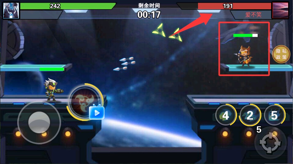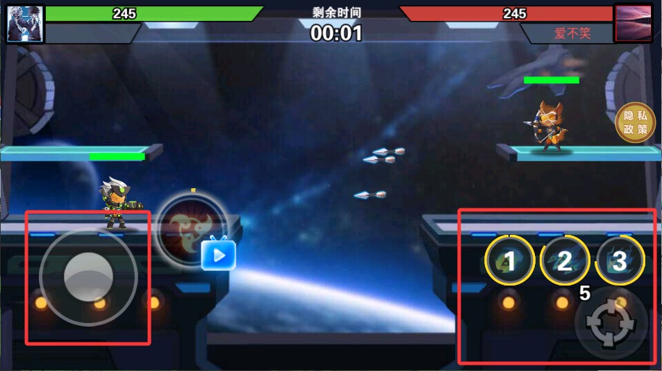 2、使用左侧的虚拟摇杆来操控角色的移动,右侧的按钮可以进行射击和释放特殊技能,灵活运用各种战术动作。