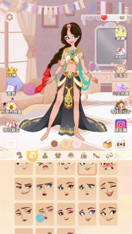2、进入游戏可以随意给公主进行装扮,不管是头发、头饰、裙子、衣服、裤子、鞋子、包包、耳环、项链等通通都可以免费搭配;