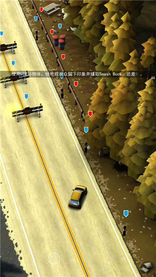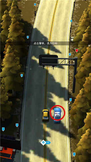 4、撞击蓝色指标物可以进行加分,当警车在旁边的时候停下来点击警车可以把它撞毁。