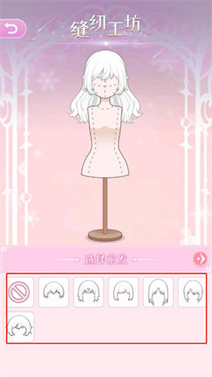 2、进入缝纫工坊可以选择衣服、发型、连衣裙模板;