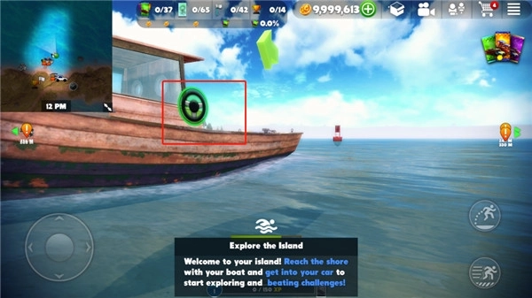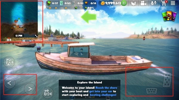 2、进入游戏后,玩家会出现在船上,你可以使用左侧的按钮来控制方向,右侧的按钮来控制油门和刹车;