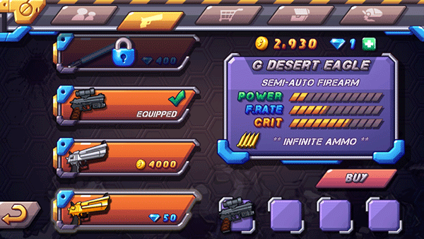 2、您能够对武器进行升级,同时也能购置新武器。此外,特殊物品、道具以及机甲设备也都在可购买之列。