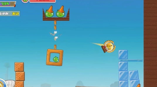 6、通过经典的拖动与发射方式展开攻击,当成功击败场景内所有绿猪时,便可顺利通关。