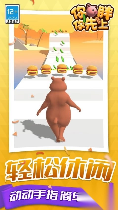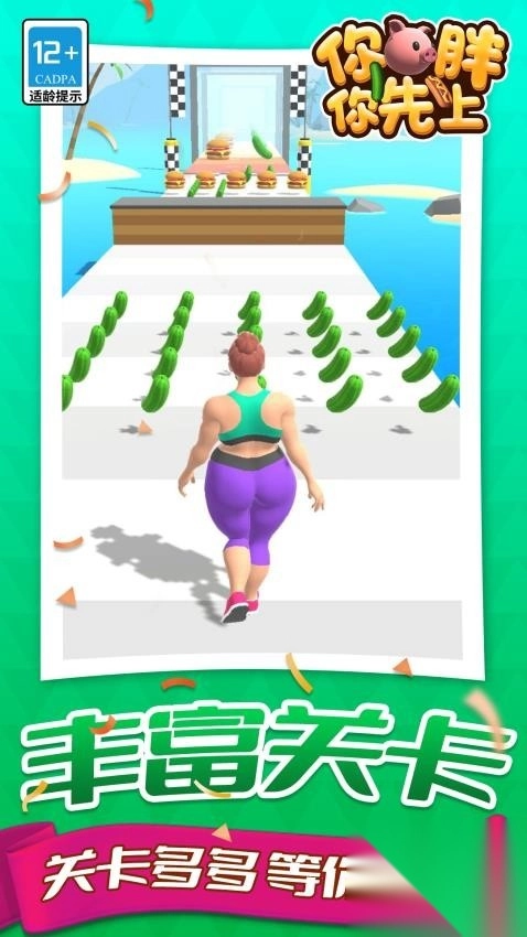 1、游戏采用肥胖角色作为主角,通过夸张可爱的造型设计,将减肥这一严肃话题转化为轻松有趣的游戏体验。