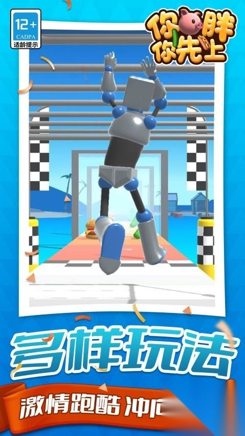 1、基础玩法是通过跑酷形式完成减肥任务,玩家需要控制肥胖角色灵活移动,躲避障碍物并收集健康食物。