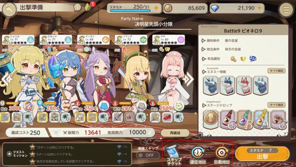天启有很友善的自动刷本模式,在关卡编队界面下方会出现三个按键(下图红框),从左至右分别为:1、扫荡(需要扫荡券)2、远征周回(离线自动刷本)3、自律周回(在线自动刷本),可以尽量挂等级高一点的本。