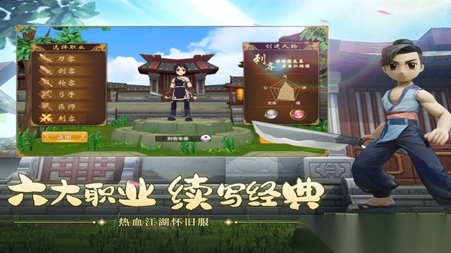 双线转职进阶,独创武功秘籍。刀、剑、医、弓、枪五大职业重临江湖,正邪阵营任你抉择,畅享别样江湖人生。还有自创武功等新颖玩法,助诸位大侠笑傲江湖。