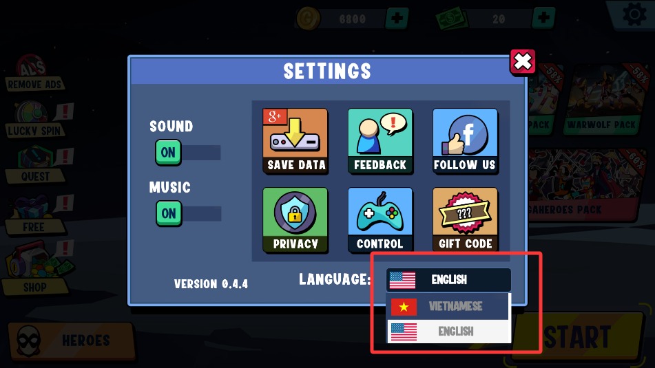 1、开始游戏前,先进入设置把语言调整为中文,不要用那些看不懂的外语。调整好后,才能看懂游戏中的技能说明。