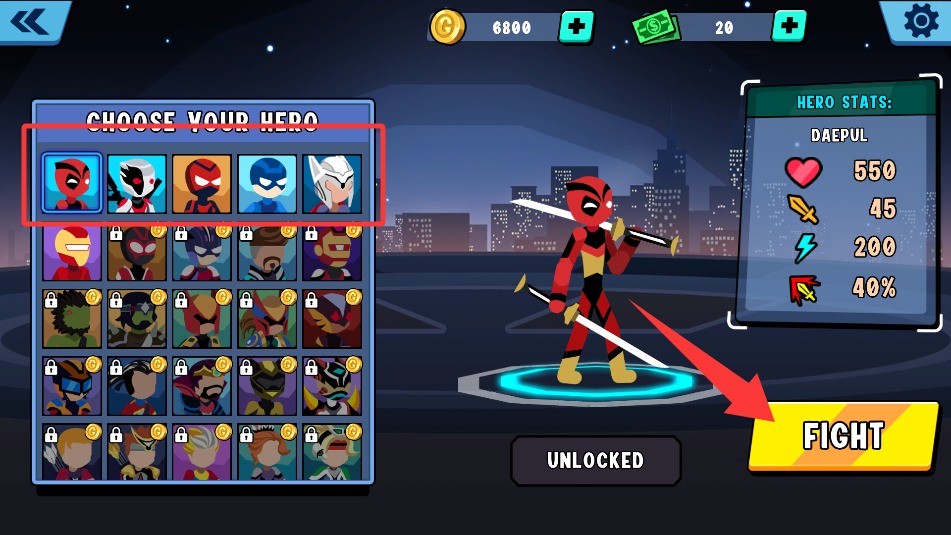 2、全明星角色库:收录50+特色火柴人英雄,从忍者到机甲战士风格迥异。每个角色拥有3种专属奥义。