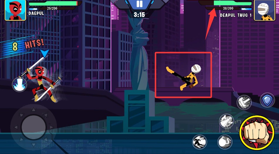4、盯着敌人血条打,连招接技能一套带走,把对面全干趴下就能过关,记得留大招对付难缠的。