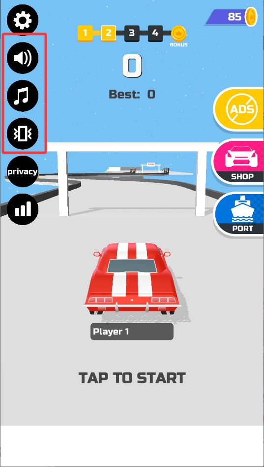 1、开始游戏前,先调整设置中的音效和震动,将操作手感调至最舒适的状态,这样可以让漂移体验更加出色。对于新手来说,建议先关闭震动功能来练习技巧。