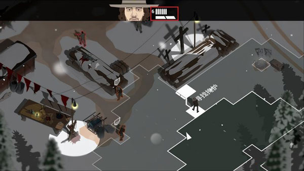 1、显示当前警员头像、弹药以及行动点数,下方两个四边形代表还可以行动两次。