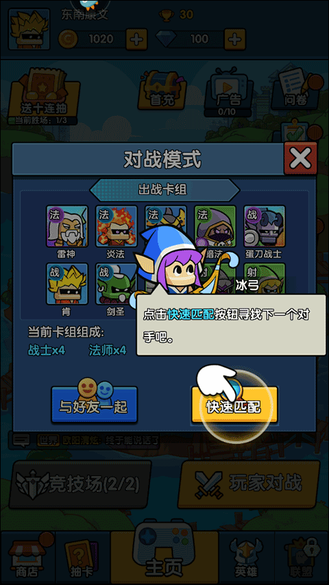 2、第一步,在弹出的对战模式选项框里,找到并点击“快速匹配”这一功能选项。