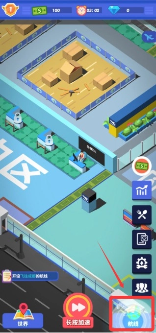 1. 进入游戏后,首要任务是开设航线,点击右下角的“航线”选项。