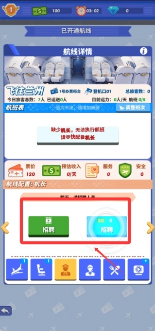 2. 因缺少机长,航班无法执行,需尽快开展招聘工作,点击下方按钮进行招聘。