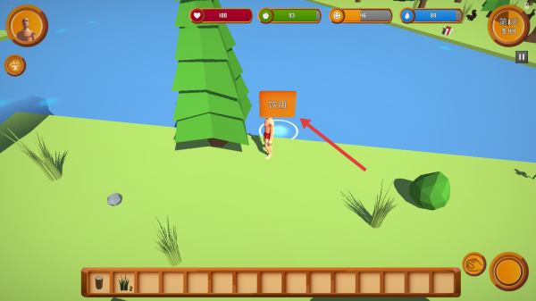 2、当你接近水源等可利用的资源点时,屏幕上会出现如饮用等互动选项。点击这些选项即可执行相应操作,以满足角色的生存需求。