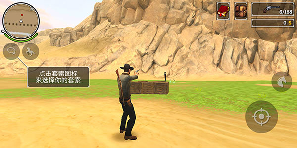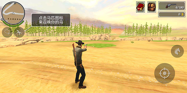 1、下载《火枪与马刺2》,进入游戏后,通过滑动屏幕左侧区域操控角色移动。