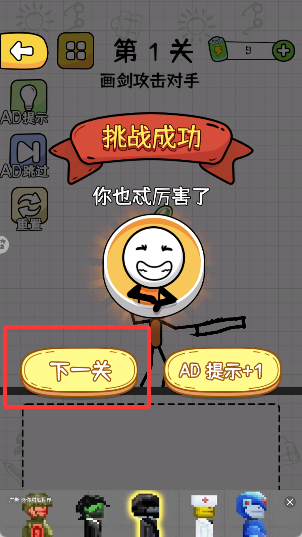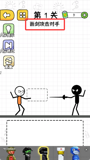 3、进入关卡后,我们需要绘制一把剑来战胜对手。