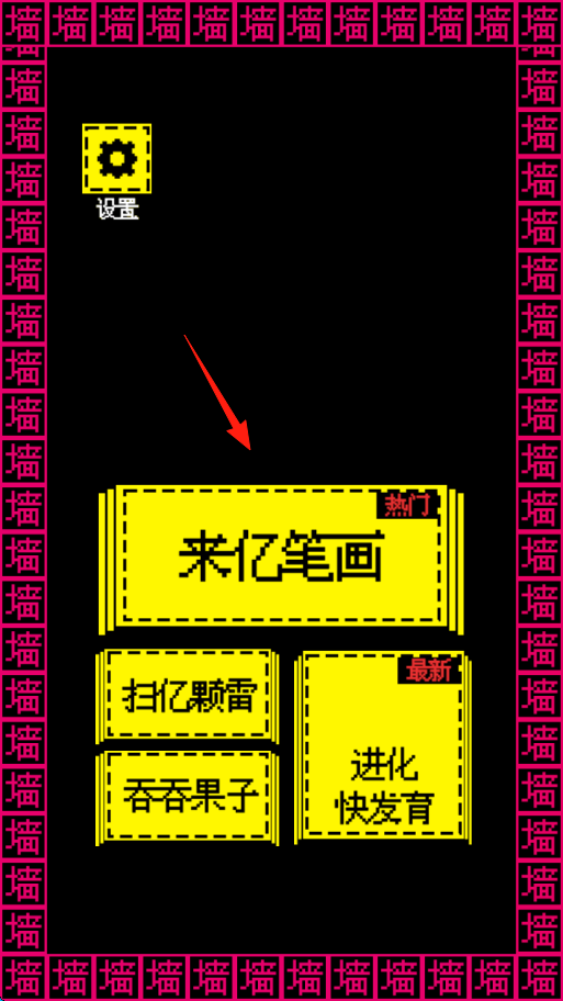 1、登入游戏进到主界面,有选来亿笔画,扫亿颗雷,吞吞果子等选项,点击来亿笔画进入迷宫关卡。