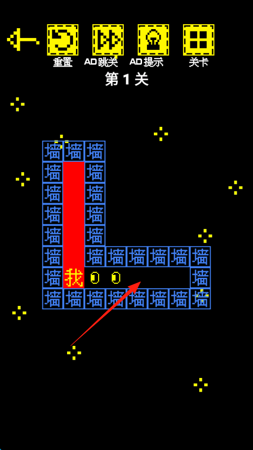 2、控制我的红色方块,在由蓝色和紫色墙壁构成的彩色迷宫中移动,按照箭头指示的方向前进,避开障碍物,收集前方的金币,并找到出口。