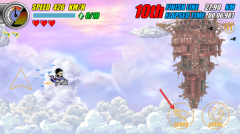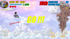 1、操控角色驾驶飞行器,通过左侧箭头调整飞行方向,避开障碍。