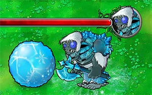 --小型冰球:具备1800的耐久度(能够被击破),拥有阻挡子弹穿透的能力,移动速度处于中等水平,还能碾压植物并在经过的地方留下冰道。