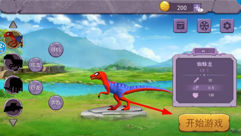 1进入游戏后,挑选你的初始恐龙种类,熟悉它的基本属性和操作方法。在新手区域内练习移动、攻击和觅食等生存技巧,从而开始你的恐龙生存冒险。