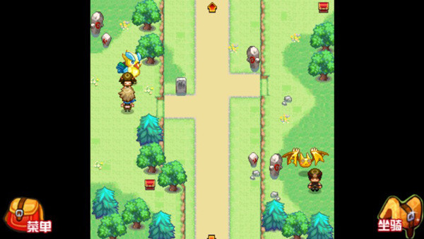 值得一提的是半路上会遇见一个名字叫马格尔的NPC,游戏里到处都能看到这种带着宠物的NPC,对话即会进入对决战斗,战斗胜利会拿到大量的经验值和物品。所以暂时先不要和他对话,否则进入战斗之后吃到战斗经验的就是村长借给玩家的宠物了,之后初始宠物会被村长回收得不偿失。