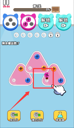 1、开始时先观察当前关卡的螺丝分布和收纳盒的颜色,优先拆卸与收纳盒颜色相匹配的螺丝,这样可以提高消除效率。