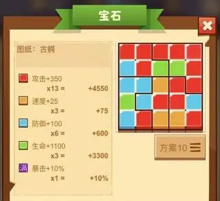 中级宝石的合成一共需要3块初级宝石,玩家们可以随意选择,高级宝石也同样需要3块中级宝石的合成,合成高级宝石玩家们就可以开始镶嵌了,选择合适的宝石镶嵌在图纸上就像俄罗斯方块一样堆积,在图纸上堆积好的宝石可以大幅度强化属性。